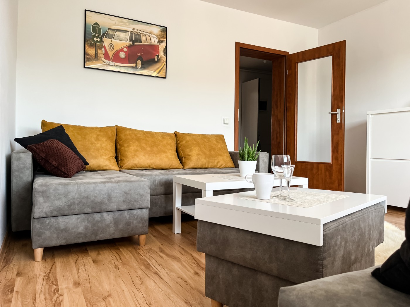 Uroczy Apartament Pod Skarpą is located in Wadowice in a residential block on the second floor. The apartment has a living room, 2 rooms, 6 beds, bathroom, fully equipped kitchen, TV, free WiFi and a balcony. You can leave a pram or bicycles in the basement. There is a free parking space in front of the facility and, in addition, in the area of the facility there are playgrounds for children, an indoor swimming pool "Delfin", grocery stores, a local bakery, cafes, a city park with attractions for children, a tennis court and a graduation tower.