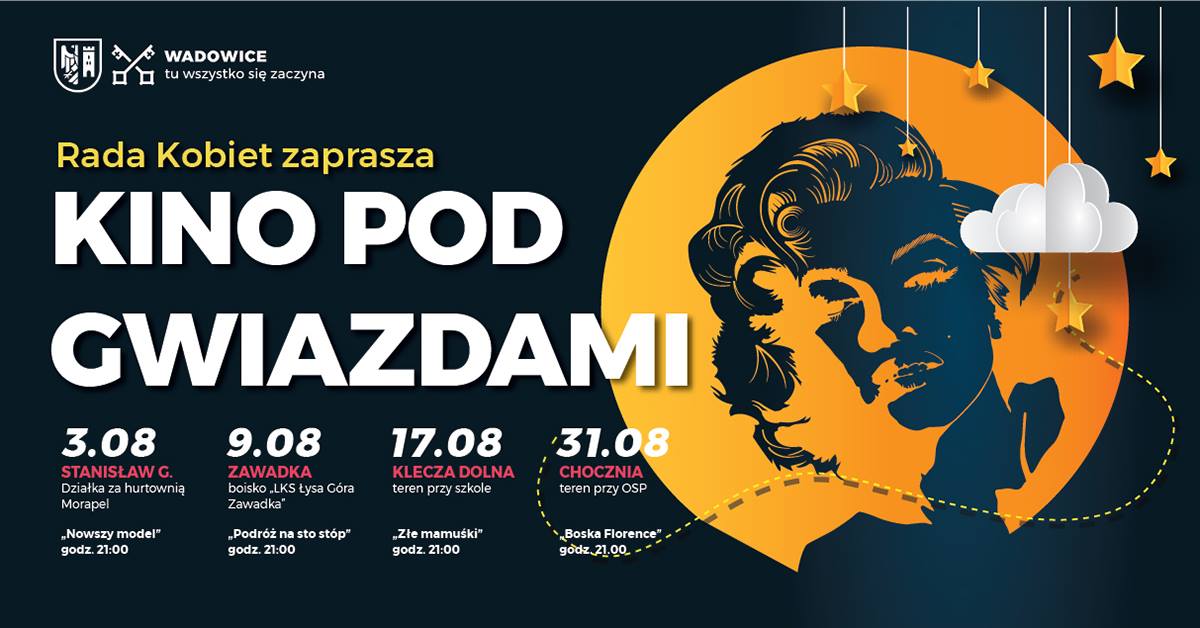 Women’s council at the Mayor of Wadowice wants to invite to another edition of Cinema under the stars – outdoor cinema in four parts of our municipal district. The first meeting will take place on 3rd of August in Stanisław Dolny. Next one in Zawadka, Klecza Dolna and the last one in Chocznia.