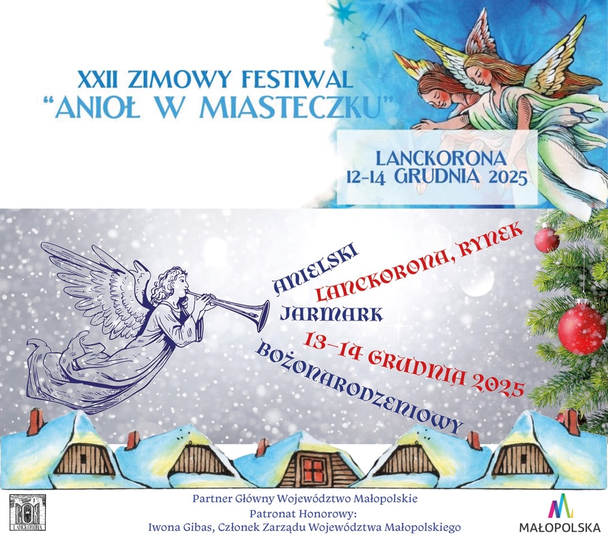 The Angel Christmas Market is a handicraft and homemade delicacies fair held on the weekend of December 13-14. It's an opportunity to stock up on unique and original decorations, gifts, trinkets, and treats. It's a festival of the festive imagination of artists connected to and in love with the Lanckorona region. It's the culmination of the 22nd Angel in the Town Winter Festival in the Lanckorona market square: concerts, meetings, events, and surprises in the spirit of the approaching Christmas season.