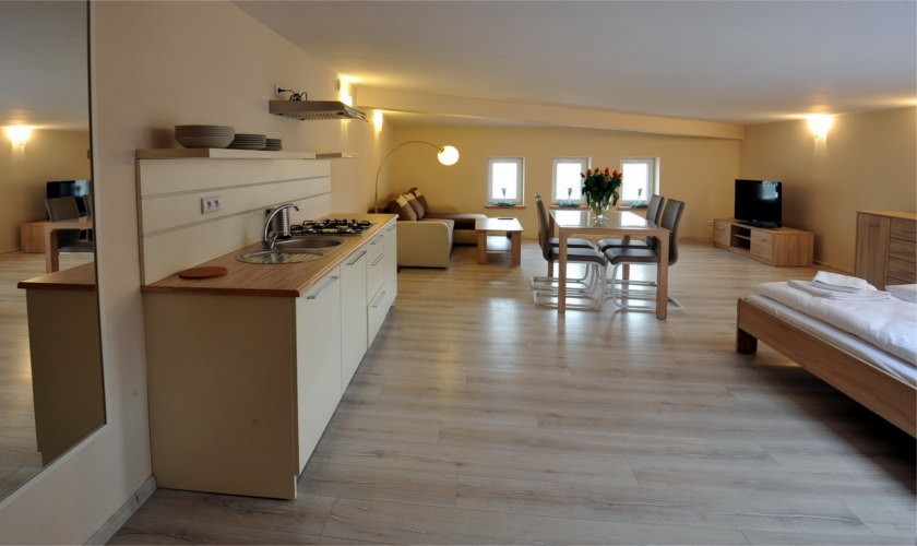 Hay 7 suites disponibles: blanca, familiar, estudio y 2 modernas suites y 2 exclusivas suites con jacuzzi.