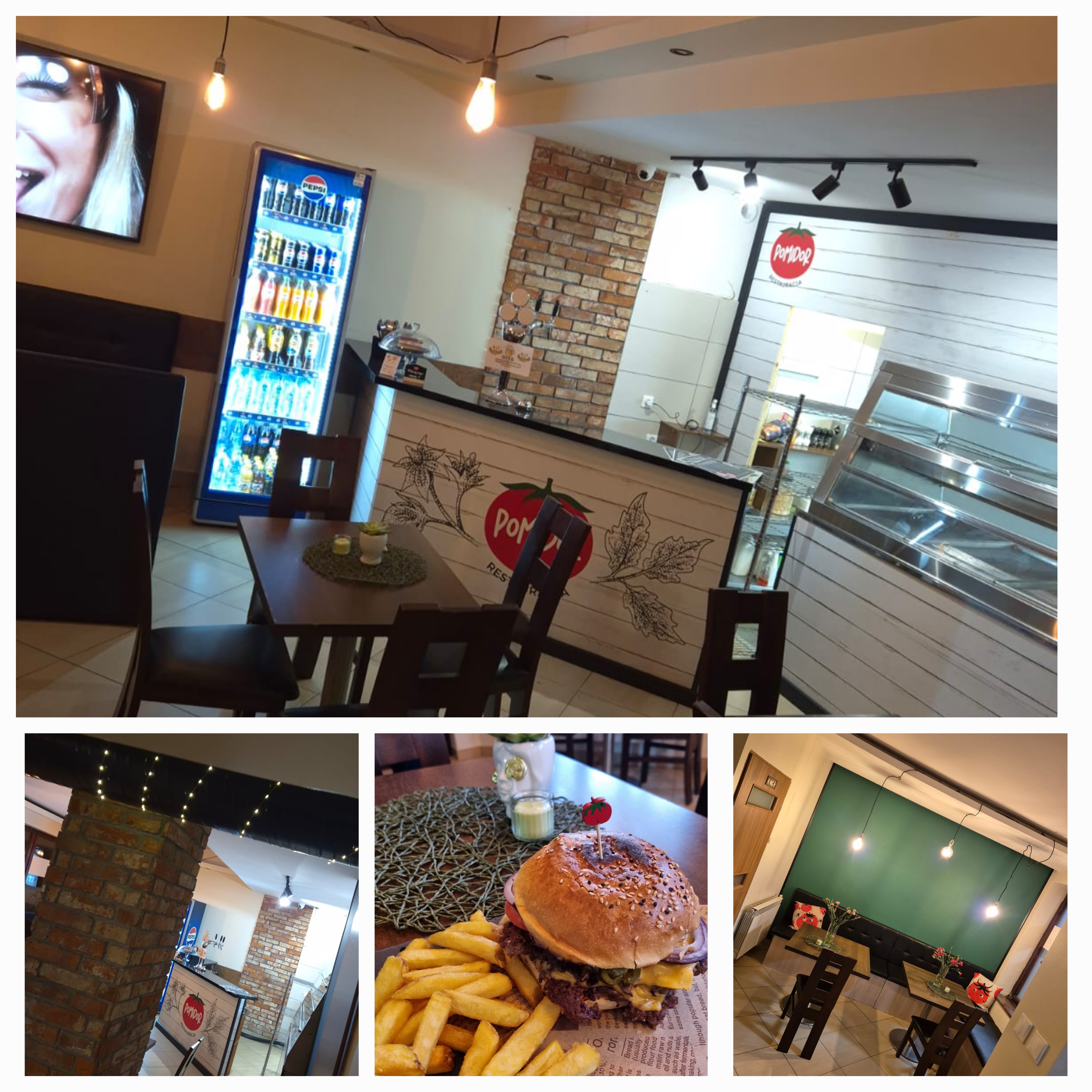 En el restaurante “Pomidor” en la calle Cicha 2 puedes comer una hamburguesa, un hot dog, una ensalada, ver un partido y beber una cerveza.