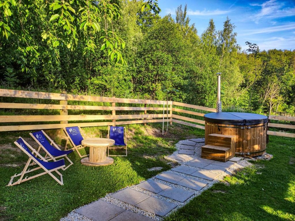 À proximité de la maison d'hôtes, un sentier mène à Jaroszowicka Góra, et des sentiers populaires menant à Leskowiec (Groń Jana Pawała II) démarrent à une certaine distance de Gołębiówka. La maison d'hôtes offre également une vue magnifique sur le barrage de Świnna Poręba et le lac Mucharskie. Les hôtes arrivant tard le soir peuvent accéder au jardin avec une aire de jeux pour enfants et un kiosque pour se détendre. Une baignoire est également disponible sur demande préalable.