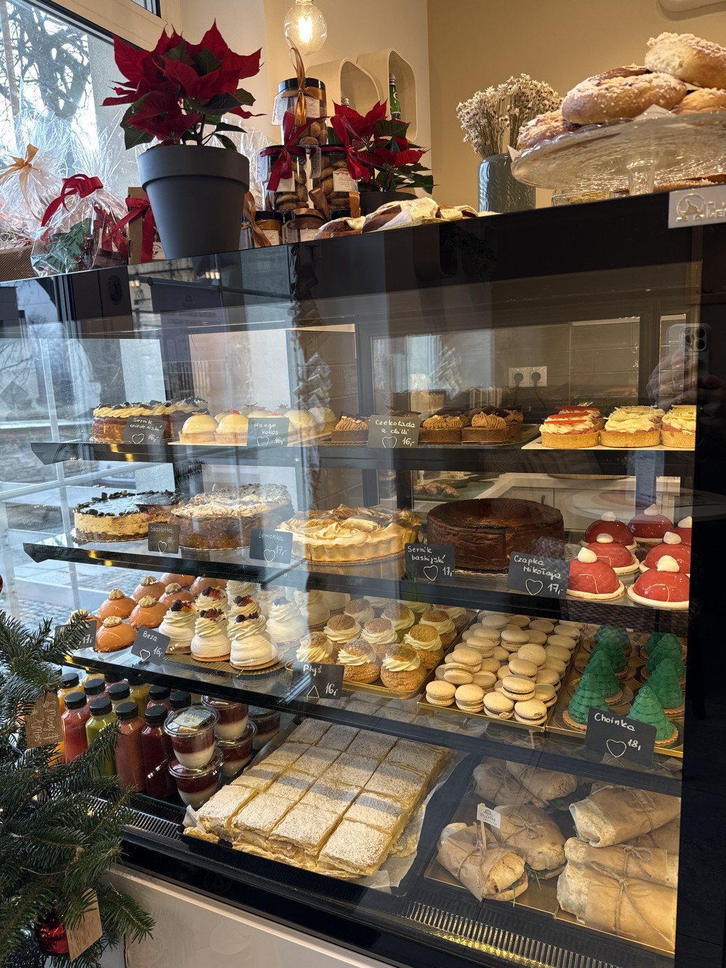 La pâtisserie propose de délicieuses viennoiseries, de savoureux gâteaux et un excellent café, ainsi que les fameux gâteaux glacés Wadowice, préparés avec de la pâte française.