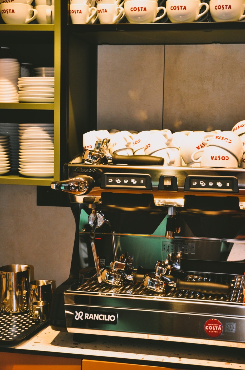 Un café situé au centre de la ville, dans un bâtiment d'angle de la rue Krakowska.