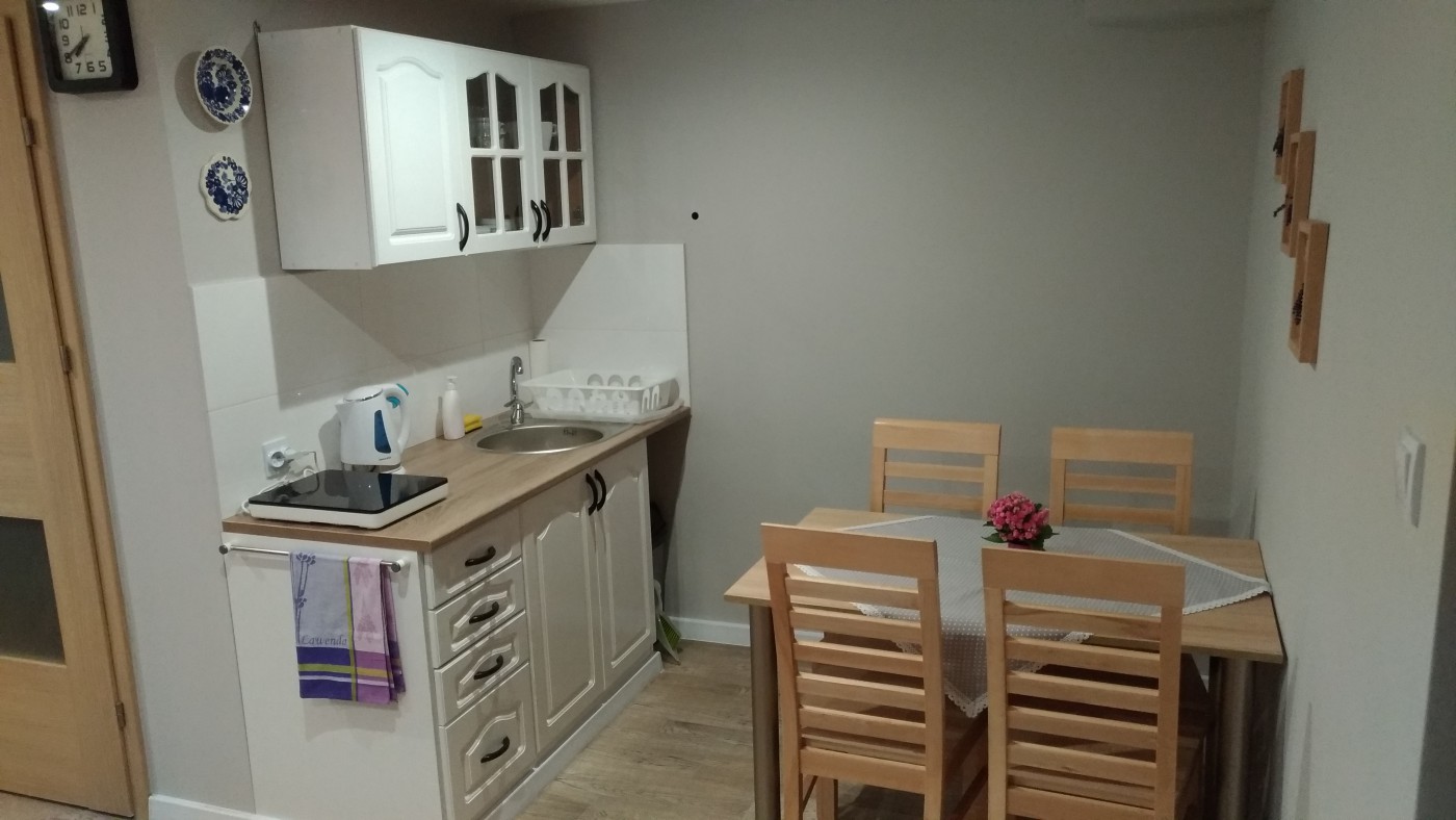 'Angolo di lavanda' vi invita a camere per tutto l'anno. Il monolocale è composto da 2 camere / 7 persone /. L'edificio si trova al piano terra di un edificio di una casa unifamiliare, che si trova sul giardino. Bagno: WC, mobile lavabo con lampadario retroilluminato, cabina armadio, asciugamani. Cucina: frigorifero, piano cottura a induzione, bollitore elettrico, vetro, piatti, piatti, gamberi, dispensa, doccia, ecc. Parcheggio recintato gratuito per i motivi.