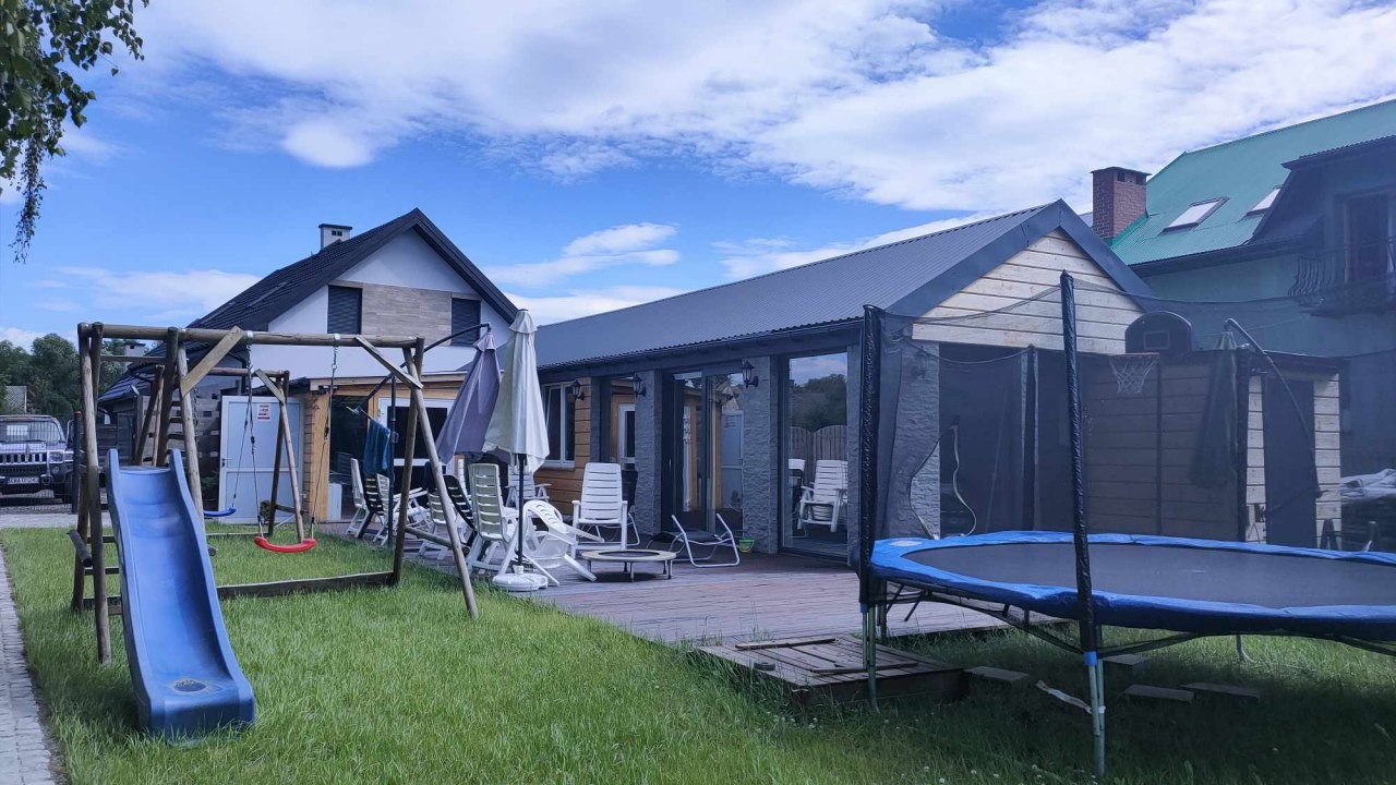 Willa Myśliwska (in legno) comprende un soggiorno con cucina, 4 camere da letto (una senza TV), 2 bagni, aria condizionata, balcone e terrazza con piccolo giardino e barbecue.