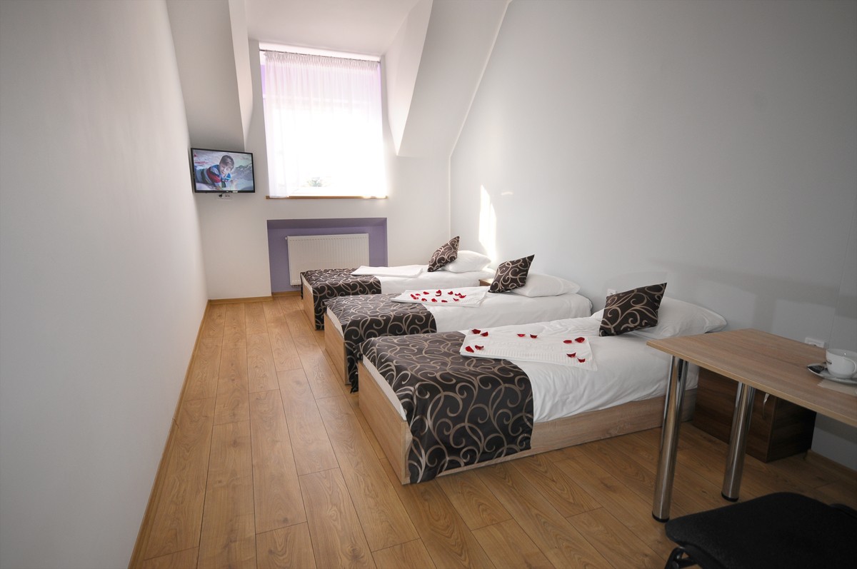 I nostri ospiti hanno a disposizione: camere confortevolmente attrezzate, sale conferenze, un parcheggio, una scuderia con maneggio, un campo sportivo. Il variegato standard delle camere soddisferà anche gli ospiti più esigenti. Disponiamo di due sale per banchetti, opportunamente adattate per l'organizzazione di ogni tipo di celebrazione ed evento speciale: banchetti, ricevimenti, comunioni, funerali. Offriamo anche un servizio di trasporto passeggeri - un'auto a 7 posti è a disposizione dei nostri ospiti, trasporto su prenotazione.