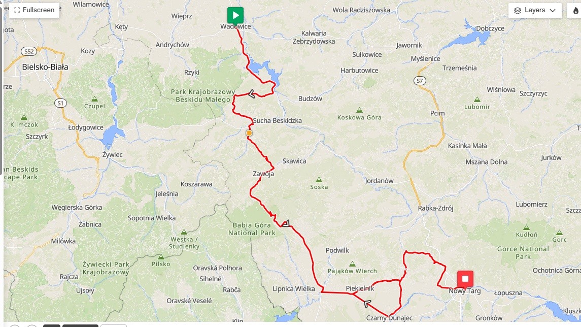 - O godz. 13.15 spodziewani są w Stryszawie na premii lotnej, kwadrans później wjadą na premię lotną w Zawoi, a kolejne 15 minut później to premia górska w Krowiarkach. Godzina 14.10 to premia lotna w Jabłonce, a 14.30 – w Czarnym Dunajcu.