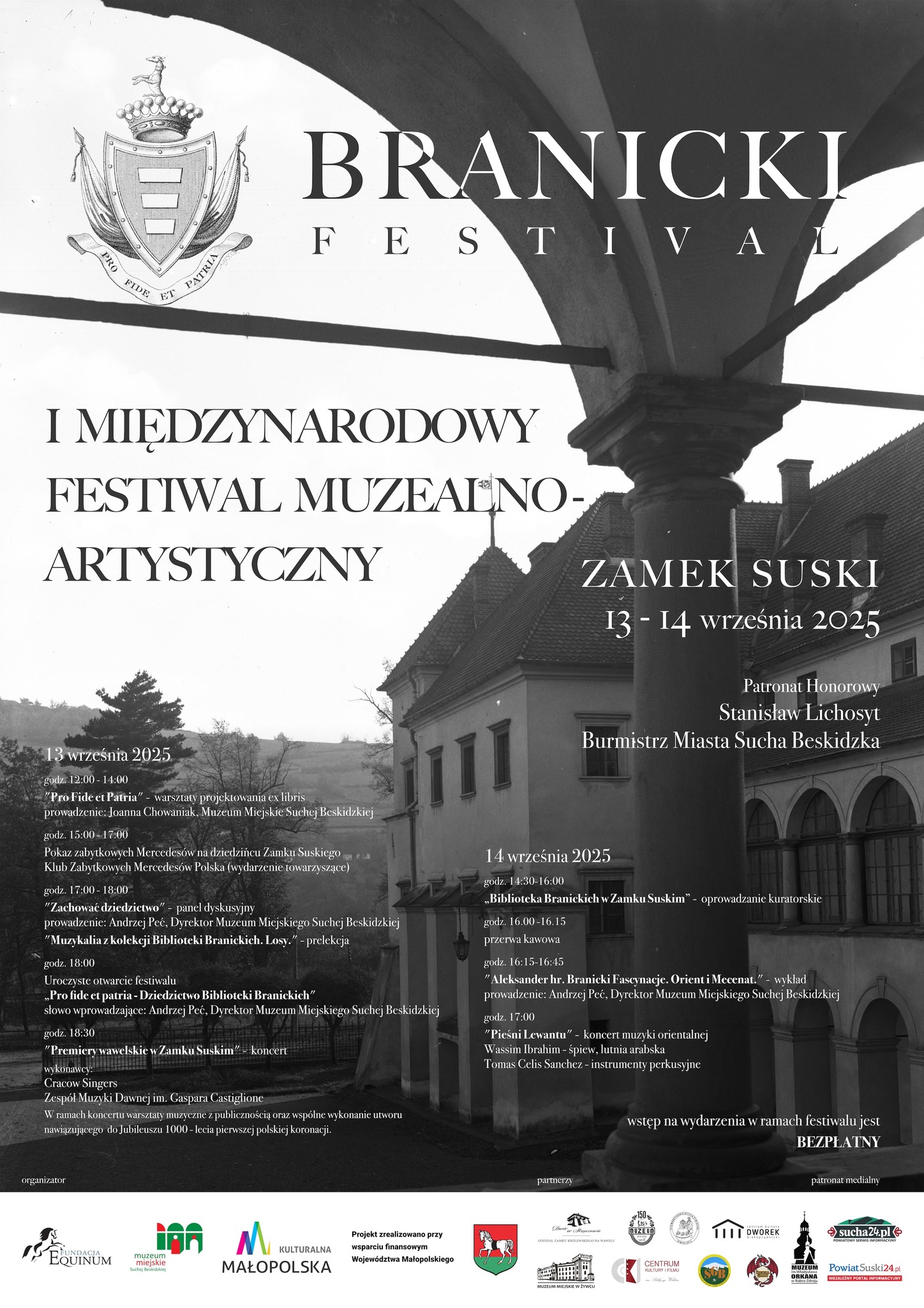 Muzeum Miejskie Suchej Beskidzkiej na festiwal muzealno-artystyczny, który odbędzie się już 13 i 14 września 2025 r. w Zamku Suskim. To niepowtarzalna okazja, by zanurzyć się w historii, dziedzictwie i muzyce, a przede wszystkim poznać fascynujące losy niezwykłej Biblioteki.