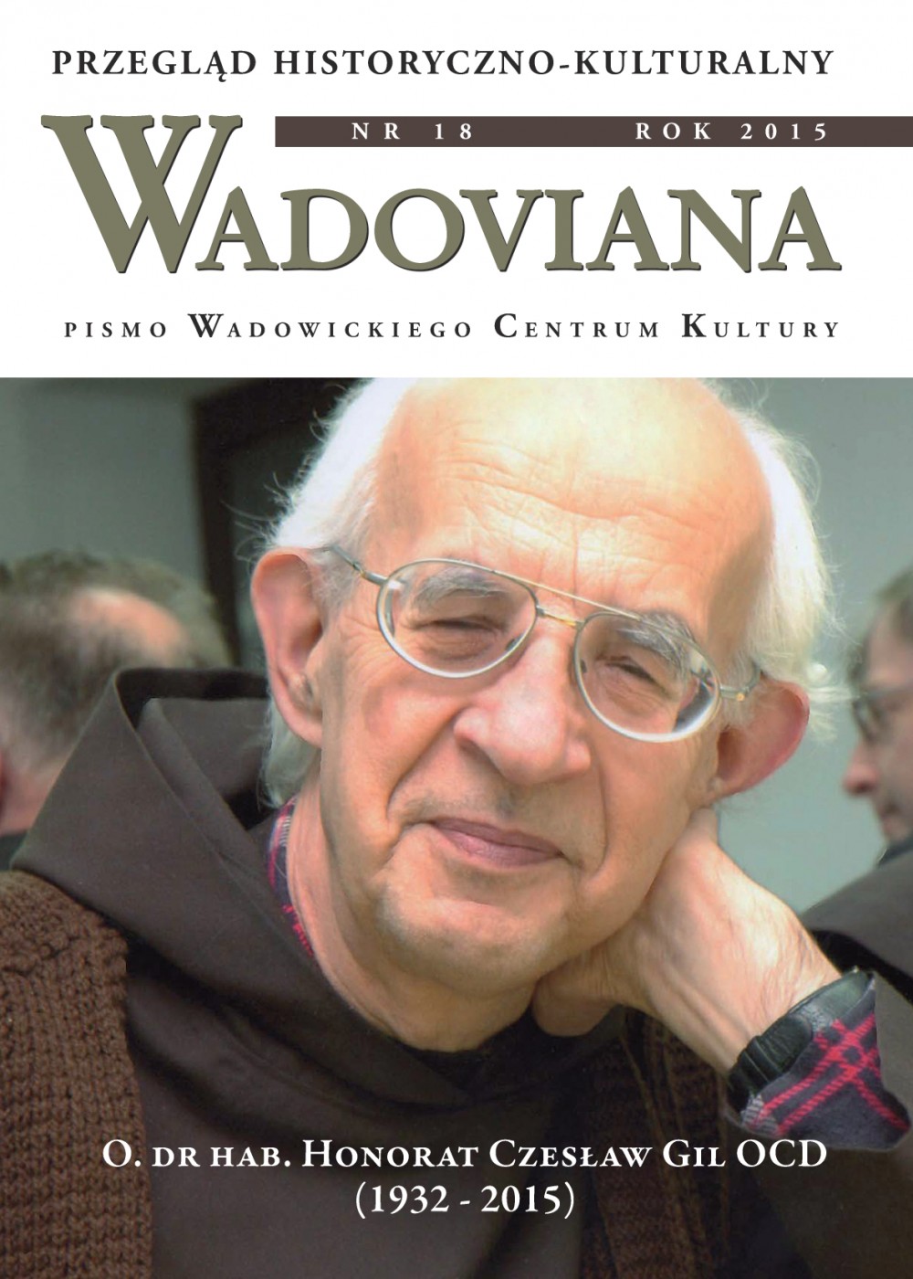 Artykuł otwierający najnowszy numer poświęcony jest osobie ojca dr. hab. Honorata Czesława Gila, karmelity z wadowickiej „Górki”, członka Rady Naukowej „Wadovian” i długoletniego współpracownika redakcji, badacza dziejów Wadowic, który zmarł 12 września 2015 r.