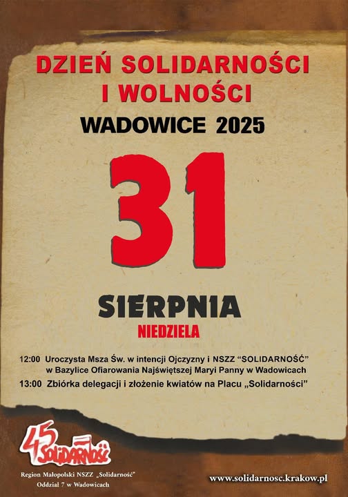 31 sierpnia - Dzień Solidarności i Wolności