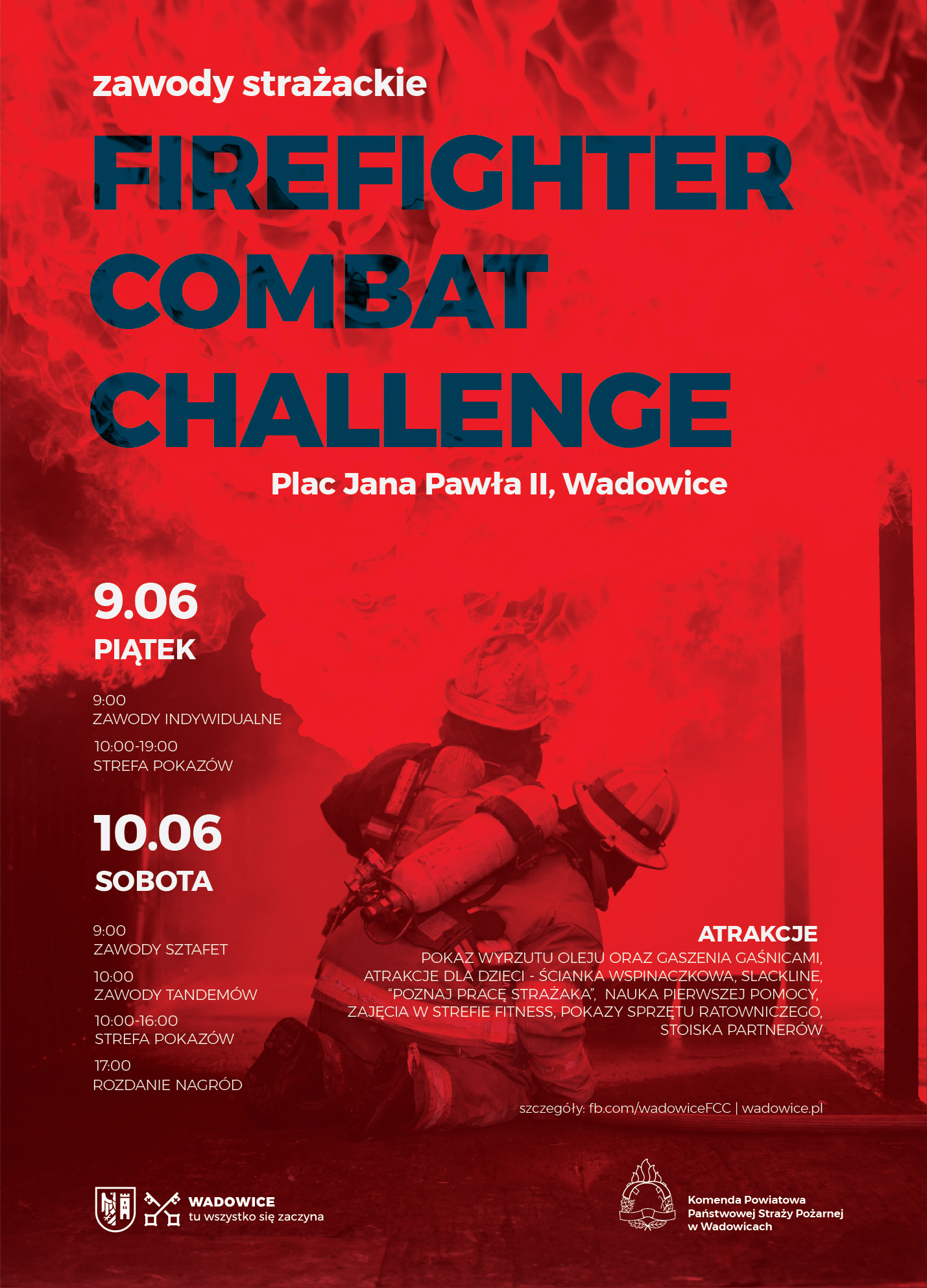 Burmistrz Wadowic Mateusz Klinowski oraz Komenda Powiatowa Państwowej Straży Pożarnej w Wadowicach zapraszają na widowiskowe zawody, które odbędą się na Placu Jana Pawła II w Wadowicach w dniach 9 i 10.06.2017r. Rywalizować będą ze sobą strażacy z całej Polski a emocje z pewnością sięgną zenitu.