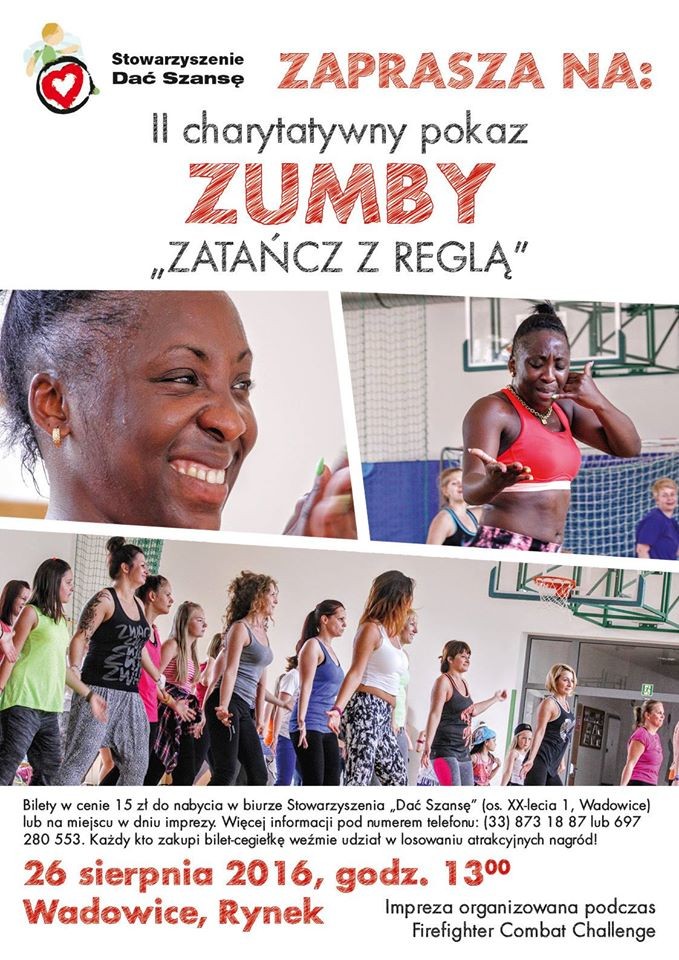 Stowarzyszenie "Dać Szansę" zaprasza na charytatywny pokaz Zumby, który odbędzie się podczas zawodów Firefighter Combat Challenge 26 sierpnia o godz. 13.00 na pl. Jana Pawła II