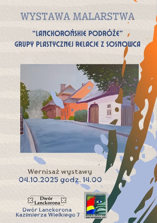 Kolejny raz Grupa Plastyczna Relacje zawita do Lanckorony, by tym razem zaprezentować swój dorobek malarski inspirowany lanckorońskim klimatem. Poezja, anioły, pochylony rynek z widokiem rozległym na góry, chaty wiekowe, przed którymi skąpane w słońcu kwiaty kwitną obficie. Zauroczeni nastrojem i architekturą zaczarowanego miasteczka wracamy co jakiś czas by chłonąć tego miejsca czar.