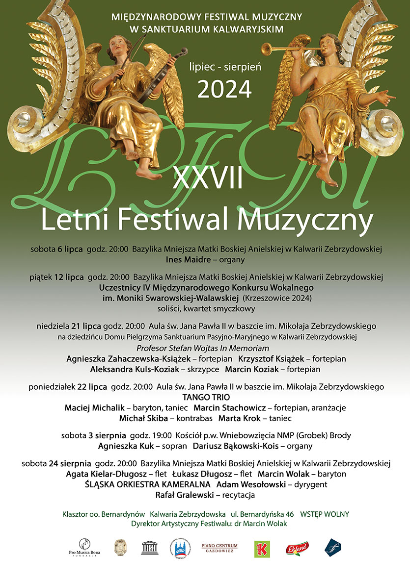 Kalwaryjskie sanktuarium zaprasza na XXVII Letni Festiwal Muzyczny. W ramach tego wydarzenia odbędzie się sześć koncertów w bazylice, kościele Grobu Matki Bożej oraz w auli Domu Pielgrzyma.