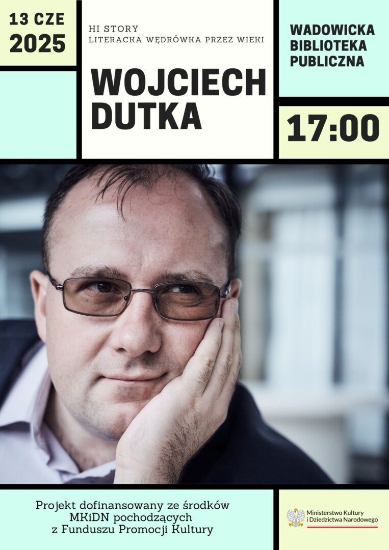 Wadowicka Biblioteka Publiczna zaprasza na spotkanie autorskie z Wojciechem Dutką – znakomitym pisarzem i historykiem, którego twórczość porusza i zabiera czytelników w niezwykłe literackie podróże przez wieki.