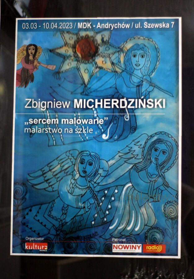 Autor malowanych na szkle obrazów, wieloletni kierownik Galerii Sztuki Regionalnego Ośrodka Kultury w Bielsku-Białej, jest znawcą i miłośnikiem twórczości ludowej Beskidu Żywieckiego. Oprócz malarstwa zajmuje się również rzeźbą i grafiką. W ciągu 5 lat stworzył przeszło sto prac prezentowanych już na kilkanastu wystawach w kraju i za granicą. – Malowanie na szkle to niszowa dziedzina sztuki ludowej, która z powrotem wraca do łask. Mnie ono uspakaja i fascynuje, nigdy do końca nie wiem, co wyjdzie na szkle w efekcie końcowym – mówił Zbigniew Micherdziński podczas wernisażu. Na wystawie można obejrzeć siedemdziesiąt obrazów z trzech cykli: „Od Świętego Mikołaja do Trzech Króli”, „Madonny i Anioły” oraz „Święci”.
