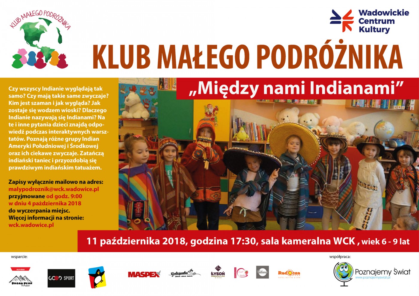 W najbliższy czwartek (11.10) o godz. 17:30 w sali kameralnej Wadowickiego Centrum Kultury (ul. teatralna 1) rozpocznie się kolejny odcinek Klubu Małego Podróżnika. Spotkanie to będzie sie pod hasłem „Między nami Indianami”. Mali podróżnicy znajdą odpowiedź na pytania: Czy wszyscy Indianie wyglądają tak samo? Czy mają takie same zwyczaje? Kim jest szaman i jak wygląda? Jak zostaje się wodzem wioski? Dlaczego Indianie nazywają się Indianami? Na te i inne pytania dzieci znajdą odpowiedź podczas interaktywnych warsztatów. Poznają różne grupy Indian Ameryki Południowej i Środkowej oraz ich ciekawe zwyczaje. Zatańczą indiański taniec i przyozdobią się prawdziwym indiańskim tatuażem.