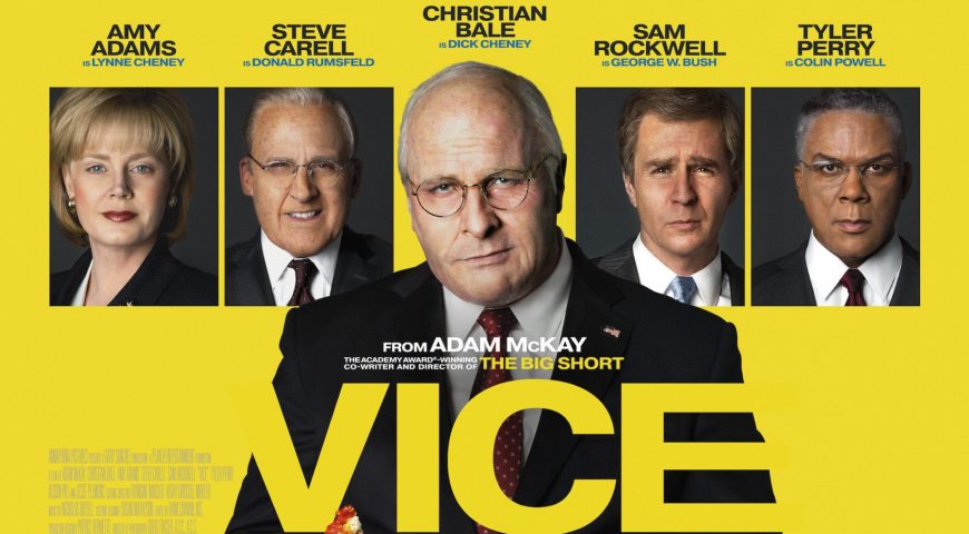 "Vice", dramat, biograficzny, prod. Hiszpania, USA, Wielka Brytania, Zjednoczone Emiraty Arabskie, reż. Adam McKay, wyk. Christian Bale, Amy Adams, Steve Carell, Sam Rockwell, Alison Pill, czas 132 min.15 lat.