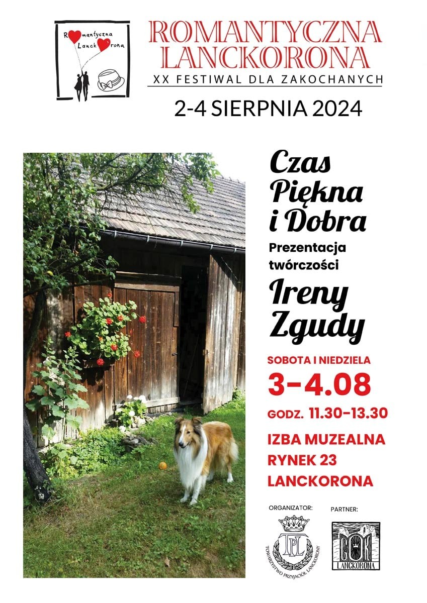 11.30 “Czas Piękna i Dobra” - prezentacja twórczości Ireny Zgudy / Ogród Izby Muzealnej w Lanckoronie, Rynek / Towarzystwo Przyjaciół Lanckorony. Wystawa otwarta również w niedzielę w godz. 11.30 - 13.30