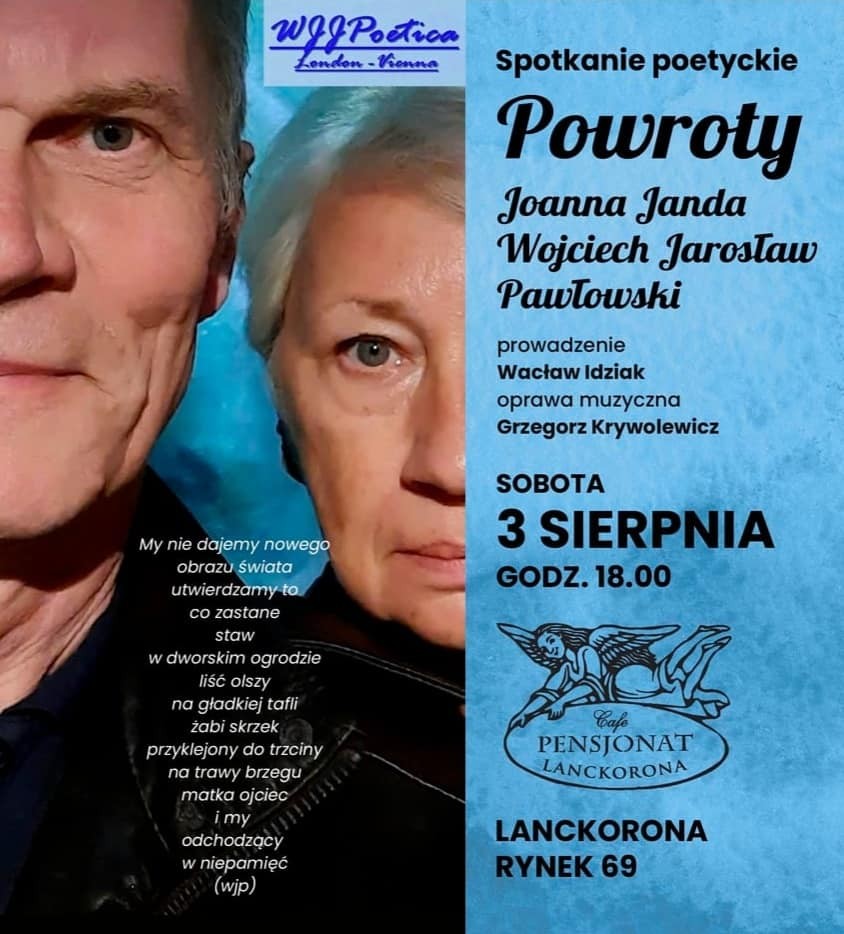 18.00 Joanna Janda, Wojtek Pawłowski - spotkanie poetyckie “Powroty..” / Cafe Pensjonat, Rynek 69, prowadzenie Wacław Idziak