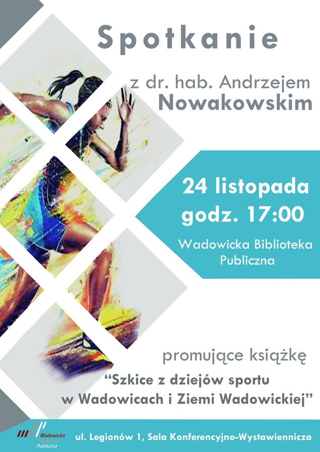 Już w piątek 24 listopada br o godz. 17:00, w sali konferencyjno-wystawienniczej w Wadowickiej Bibliotece Publicznej (ul. Legionów 1) odbedzie sie spotkanie, podczas którego będzie promowana książka "Szkice z dziejów sportu w Wadowicach i Ziemi Wadowickiej", napisana pod redakcją dr. hab. Nowakowskiego i dr. Jacka Kulpińskiego.