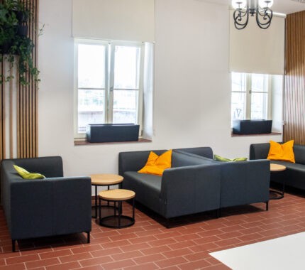 W znajdującej się na parterze Strefie (wejście od strony poczekalni dla podróżnych) znajduje się ok. 20 miejsc do pracy, wypoczynku, wyciszenia. To idealna przestrzeń, gdzie można odpocząć od codziennego zgiełku, zanurzyć się w spokojnej atmosferze i zregenerować siły. Jest to doskonałe miejsce na spotkanie kreatywnych grup a także dobra przestrzeń do co-workingu. Jest też kącik dla najmłodszych z zabawkami, klockami i podłogą fun-floor. Projekt aranżacij wnętra został wykonany przez MD Studio.