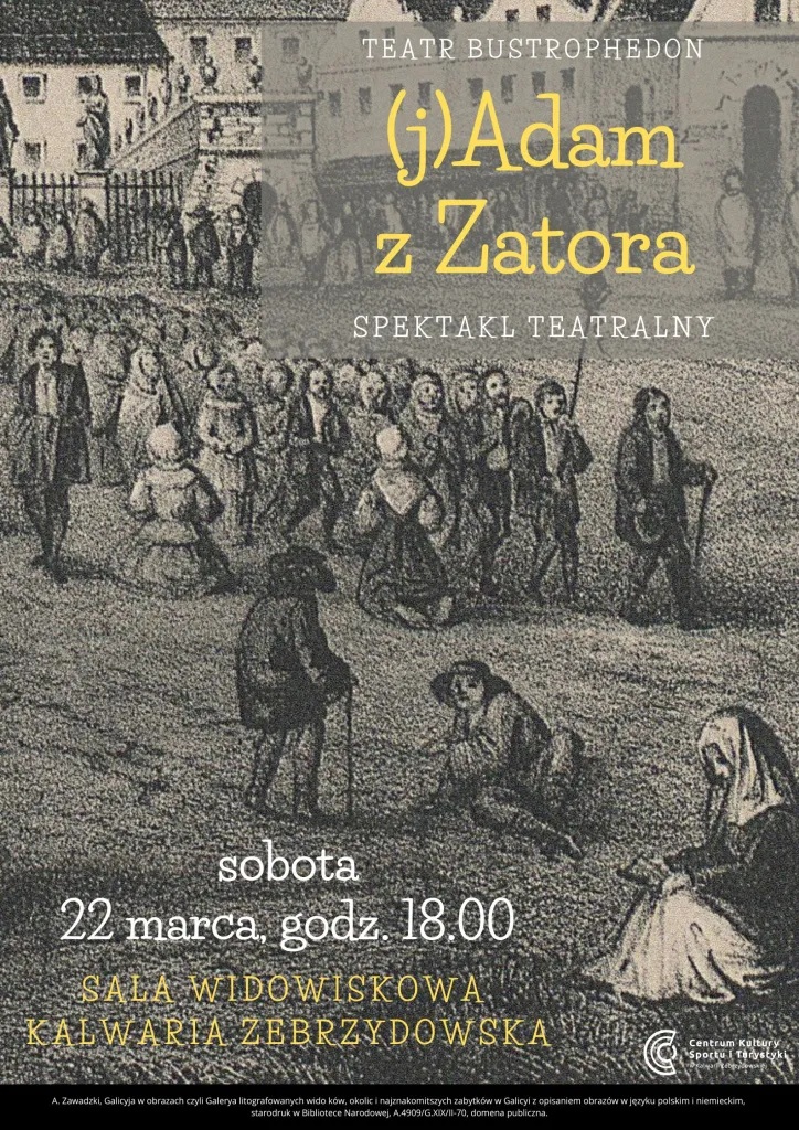 Teatr Bustrophedon, który działa od 2017 roku przy CKSiT w Kalwarii Zebrzydowskiej, zaprasza w 200. rocznicą urodzin Adama Gorczyńskiego na spektakl „(J)Adam z Zatora" oparty o twórczość zapomnianego romantyka.