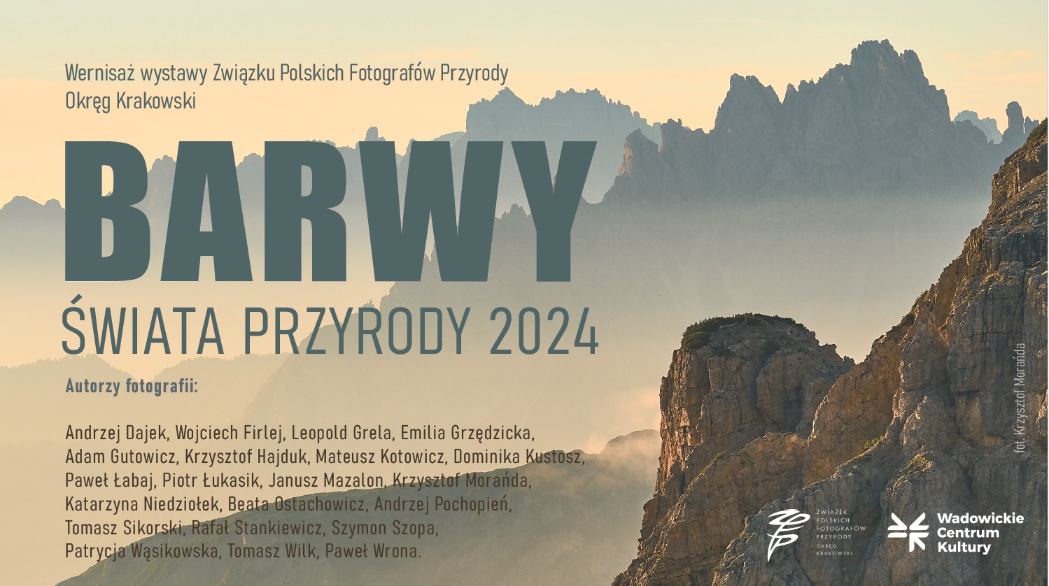 Wadowickie Centrum Kultury zaprasza na wyjątkowy wernisaż wystawy Związku Polskich Fotografów Przyrody - Okręg Krakowski pt. „Barwy Świata Przyrody”. Ekspozycja będzie otwarta od 18 pażdzienika do 24 listopada 2024 r. w godzinach pracy WCK.