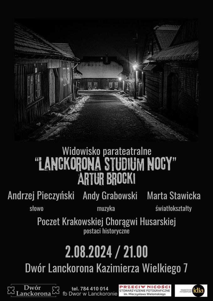 Zdjęcia Artura tworzą ramy widowiska, gdzie teraźniejszość będzie splatać się z historią a muzyka ze słowem. W sercu Lanckorony, w starym dworze, w blasku świecy trzymanej w Twojej dłoni będziesz mógł kontemplować jej magię zaklętą w kadrach, muzyce i poezji. W otulonych półmrokiem wnętrzach, kamieniach muskanych subtelnym blaskiem światłokształtów, spodziewaj się także osobliwych koneksji nie tylko ze sztuką…