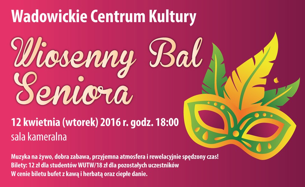 Wszystkich lubiących dobrą zabawę WCK zaprasza na taneczny wieczór z muzyką na żywo. Wiosna pobudza do działania, dodaje energii i zachęca do zabawy, dlatego też nikt nie powinien 12 kwietnia pozostać w domu. Bale WUTW spotykają się z dużym zainteresowaniem seniorów i zdobywają sympatie coraz większego grona. Kolejne taneczne spotkanie w rewelacyjnej atmosferze we wtorkowy wieczór.