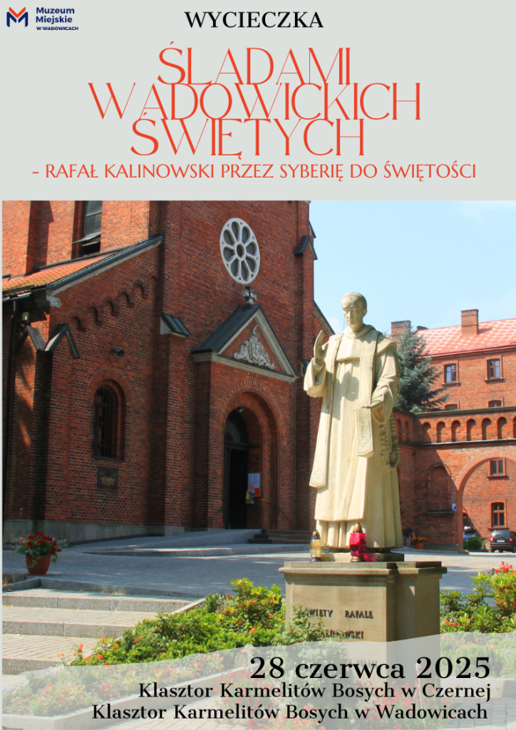 Święty Rafał Kalinowski to postać wyjątkowa nie tylko w dziejach Kościoła Katolickiego, ale również dla historii Polski w ogóle. To także postać, która zapisała się z złotymi zgłoskami w dziejach dziewiętnastowiecznych Wadowic jako założyciel klasztoru karmelitańskiego w mieście nad Skawą. Losy tego bohatera narodowego oraz świętego będzie można prześledzić podczas kolejnej wyprawy „Śladami wadowickich świętych” organizowanej przez Muzeum Miejskie w Wadowicach, która odbędzie się 28 czerwca br. (sobota) Przewodnikiem po tym szlaku będzie prof. Konrad Meus z krakowskiego Uniwersytetu Komisji Edukacji Narodowej pomysłodawca inicjatywy, ale również badacz historii Wadowic i jego mieszkańców. Podczas wyprawy zwiedzimy klasztor OO. Karmelitów w Czernej gdzie pochowany jest św. Rafał Kalinowski, klasztor OO. Karmelitów w Wadowicach, a także będziemy uczestniczyć w wykładzie poświęconym losom Kalinowskiego na Syberii podczas jego zesłania po upadku powstania styczniowego. Wykład okraszony będzie materiałami archiwalnymi przechowywanymi w archiwach i bibliotekach rosyjskich.