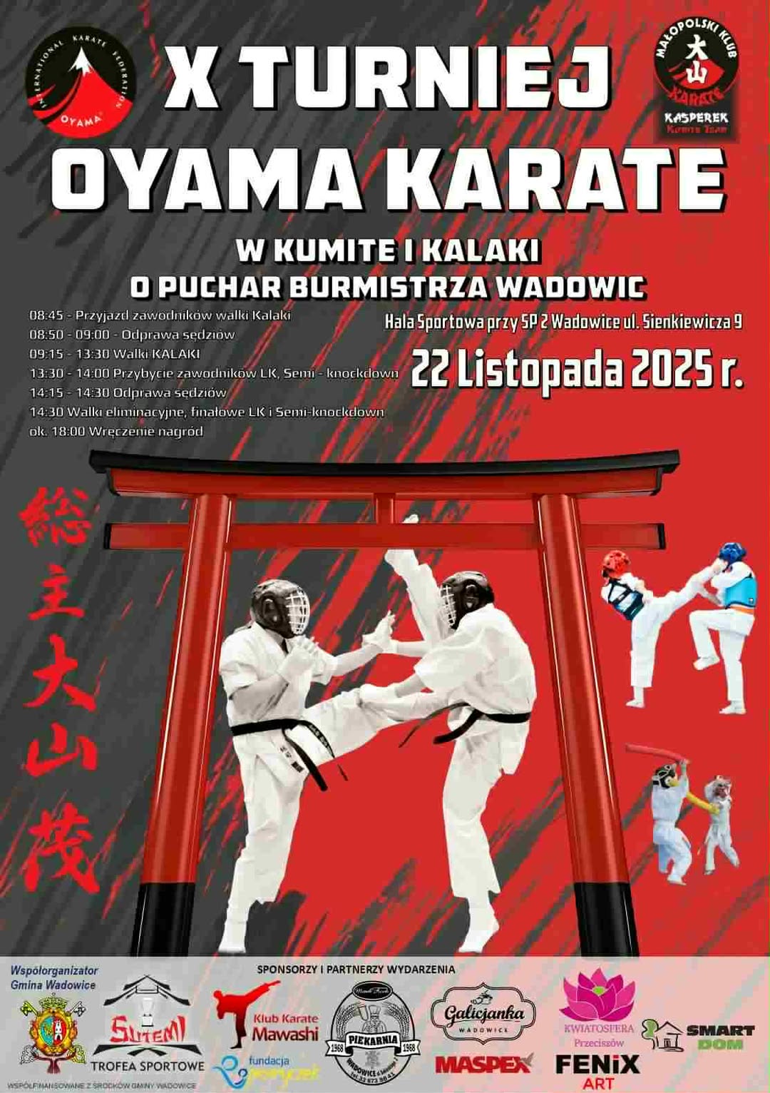 W sobotę, 22 listopada w Wadowicach odbędzie się X Jubileuszowy Turniej Oyama Karate w Wadowicach. Na macie wystąpi elita polskiego karate - zawodnicy Oyama, Kyokushin i Seido z najmocniejszych klubów w kraju.