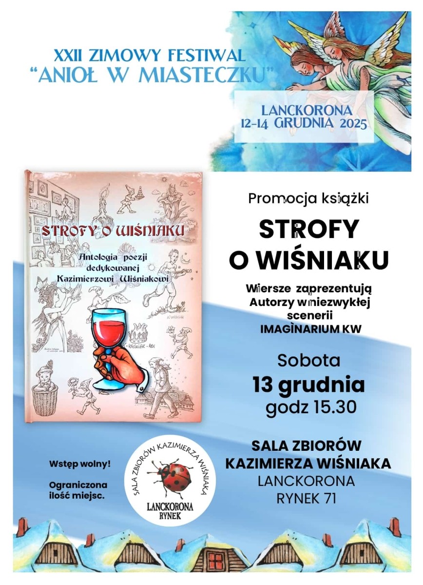 W pierwszym dniu Zimowego Festiwalu Anioł w Miasteczku zapraszamy na wyprawę do fascynującej wyobraźni, a także wielu zwykłych i niezwykłych miejsc, drogich Mistrzowi, które poznajemy dzięki pamiątkom i artefaktom zgromadzonym w tej wyjątkowej galerii. - Strofy o Wiśniaku