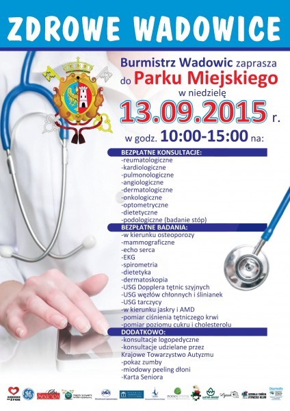 W godzinach od 10.00 do 15.00 w Parku Miejskim będzie można spotkać się z lekarzami z różnych specjalności m.in. reumatologicznej, pulmonologicznej czy onkologicznej oraz poddać się bezpłatnym badaniom m.in. z zakresu osteoporozy, spirometrii czy w kierunku jaskry. Podczas całego dnia będzie można również zapoznać się z Kartą Seniora czy zobaczyć pokaz Zumby. Więcej informacji można znaleźć na plakacie poniżej.