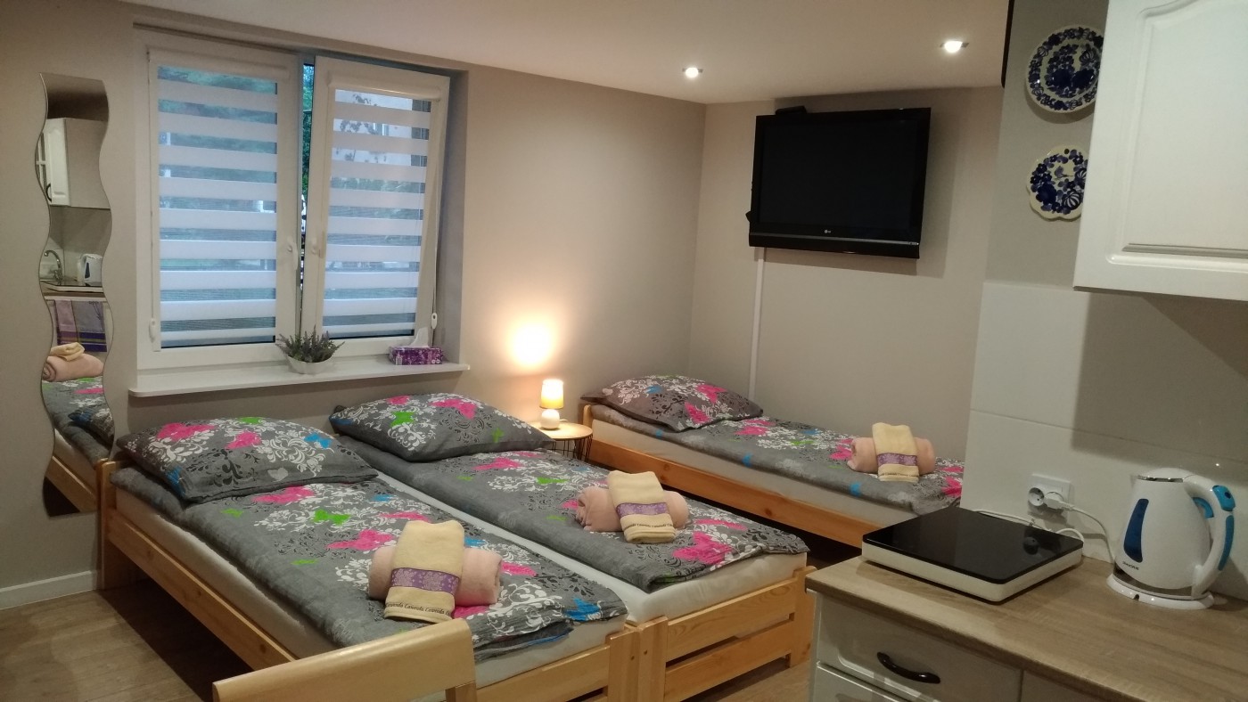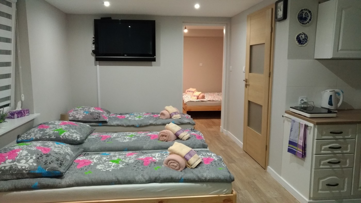 "Levanduľový roh" vás pozýva na celoročné izby. Štúdio sa skladá z 2 izieb / 7 osôb /. Budova sa nachádza na prízemí budovy rodinného domu, ktorá sa nachádza na záhrade. Kúpeľňa: WC, umývadlová skrinka s podsvieteným luster, kabína so samostatným vchodom, uteráky. Kuchyňa: chladnička, indukčný varič, rýchlovarná kanvica, sklo, taniere, taniere, krevety, špajza, sprcha, atď. Bezplatné oplotené parkovisko na pozemku.