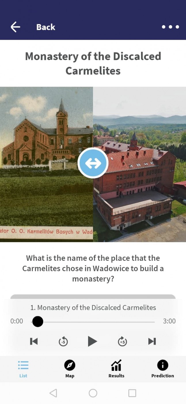 La aplicación móvil Wadowice de Galicia es una audioguía por el sendero Wadowice que conecta 13 lugares relacionados con la historia de la localidad. La aplicación está desarrollada en 3 versiones de idiomas: polaco, inglés y alemán, y tiene la función de audiodescripción en polaco.