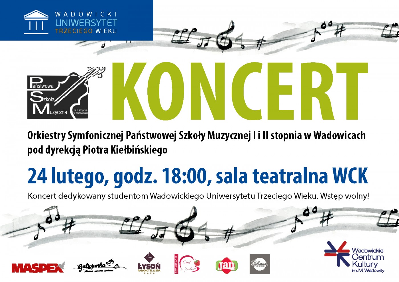 Koncert odbędzie się w sali teatralnej Wadowickiego Centrum Kultury, dedykowany jest studentom Wadowickiego Uniwersytetu Trzeciego Wieku, ale każdy miłośnik muzyki bedzie mile widziany.