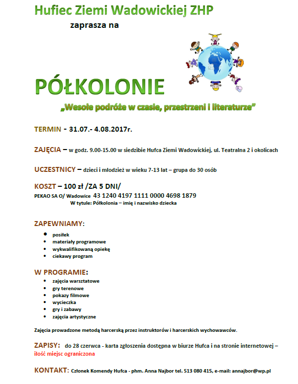 liczba miejsc ograniczona! (min 20 max. 28 dzieci na turnus)